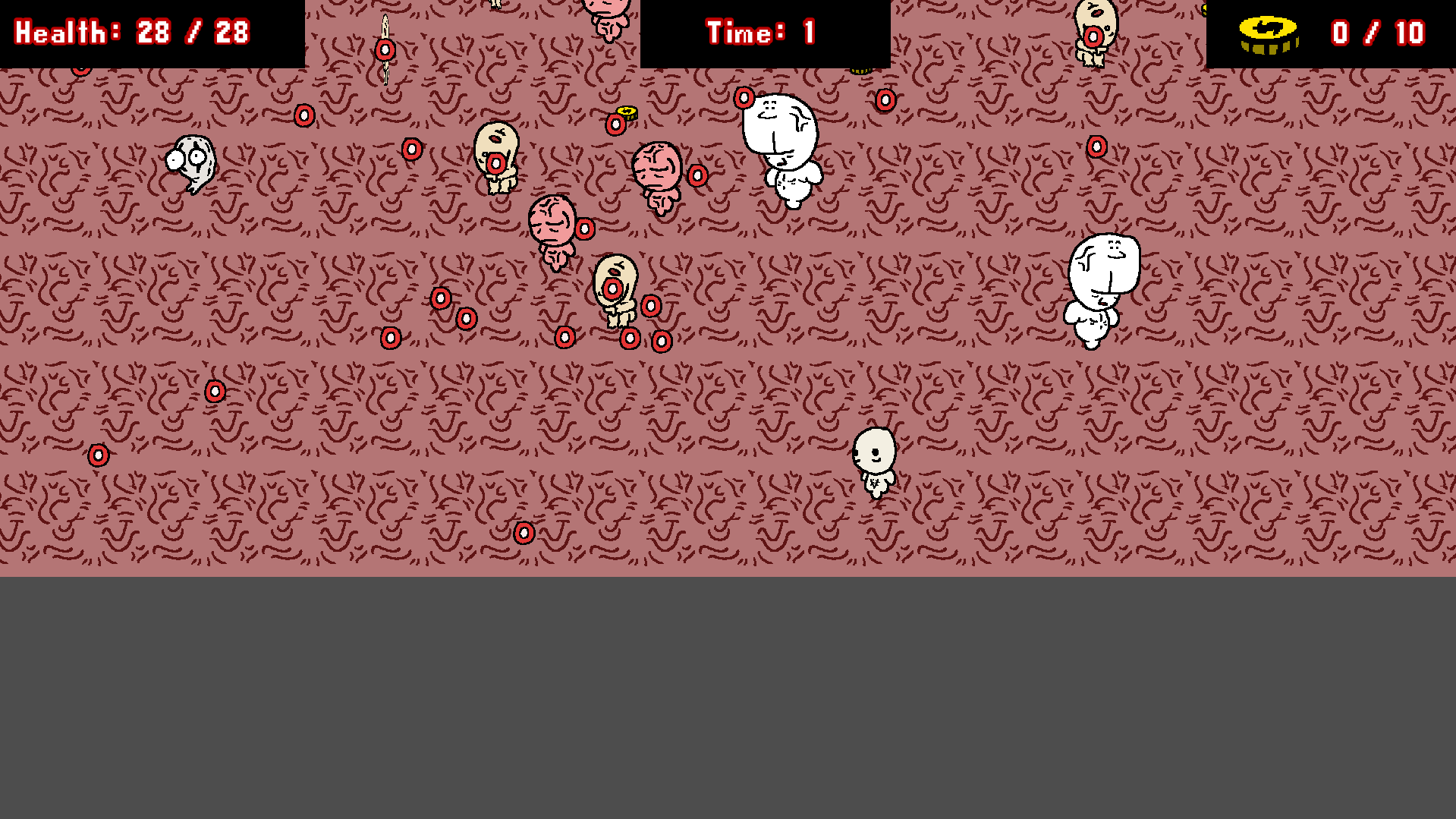 The original idea of Teratogenesis is to survive the 8 enemies (a new one appears every 30 seconds) and then fight one or several bosses. Once you defeat them, you would move on to a new world and face new challenges.